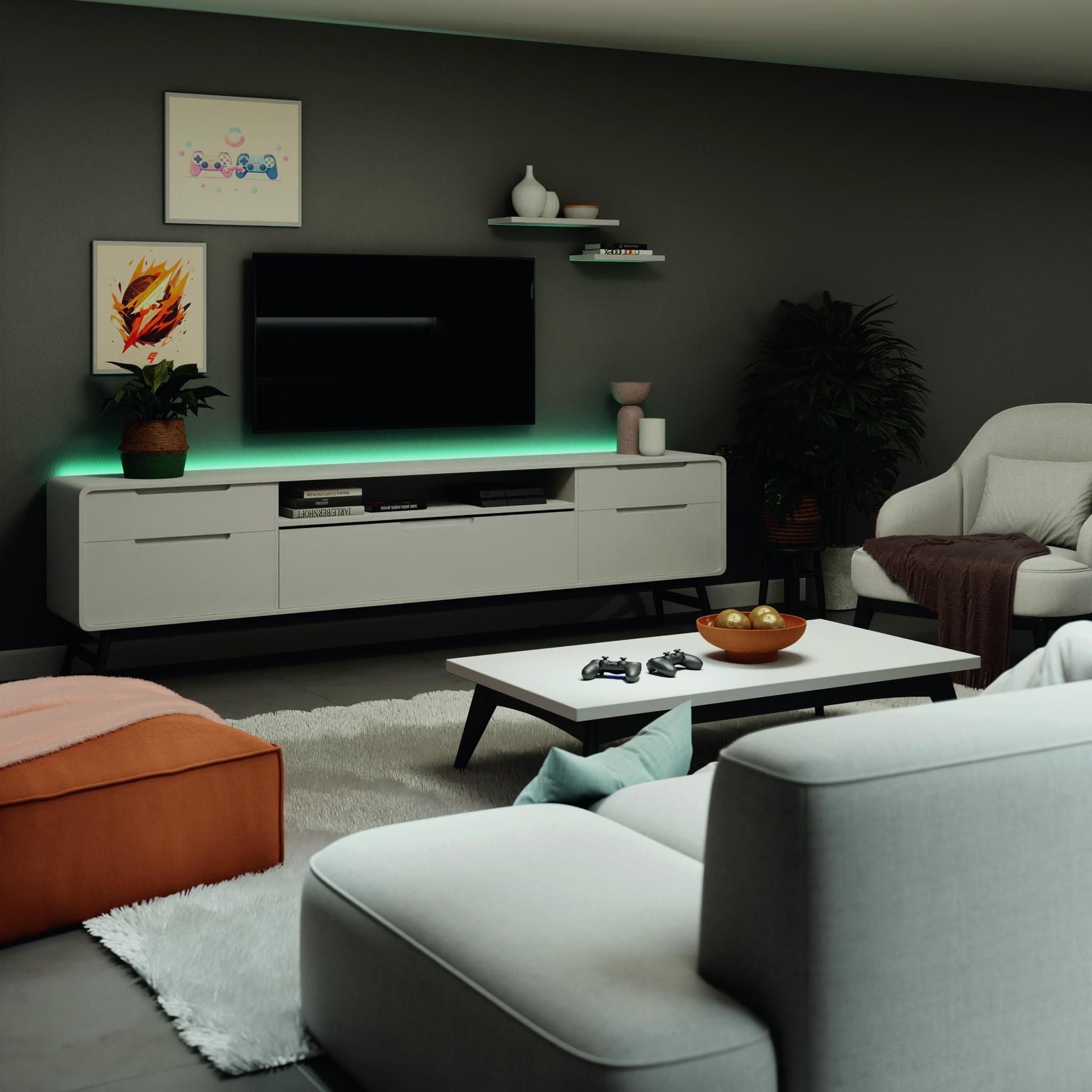 Die hochwertigen LED-Strips von tint bieten dir vielfältige Möglichkeiten für eine indirekte Ambientebeleuchtung in deinem Zuhause. Entdecke verschiedene Längen und Lichtfarben, um genau die Atmosphäre zu schaffen, die du dir wünschst. Die selbstklebenden Strips sind einfach anzubringen, individuell kürzbar und lassen sich flexibel um Ecken und Kanten verlegen.