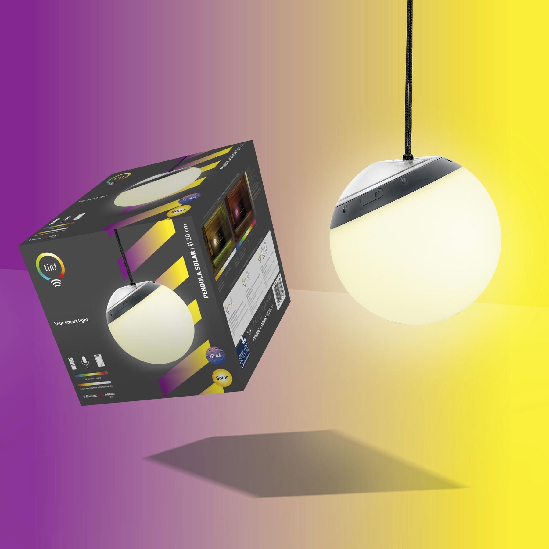 - Smarte tint Outdoor LED-Leuchtkugel Pendula Solar white+color von MÜLLER-LICHT, vielseitig einsetzbar als Tisch- oder Hängeleuchte. Für individuelles Stimmungslicht im Garten, auf der Terrasse oder dem Balkon